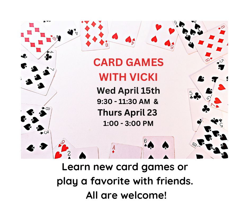 Card Playing with Vicki – Wednesday, April 15th and Thursday, April 23